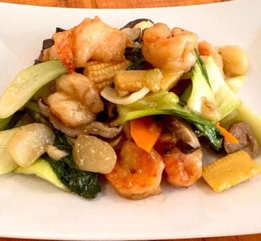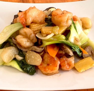 42.Garnalen met pikante zwarte bonensaus.........................................€19.50